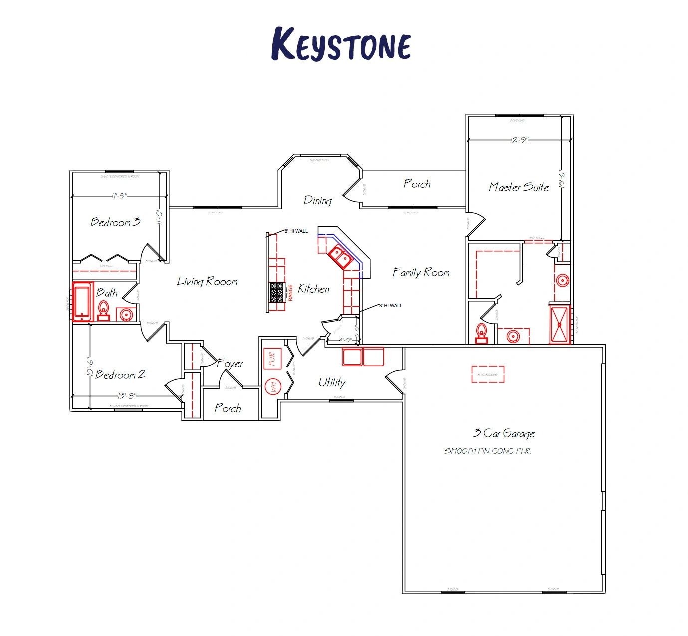 The Keystone is a split 3 bedroom rancher that features a separate living and family room as well as a mudroom and secluded back porch.