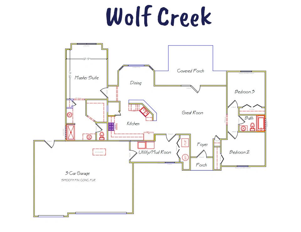 The Wolf Creek, with its open concept design, is Still our most popular home! It features a large covered back patio, perfect for enjoying our beautiful Colorado mountains and sunsets. The house is a 3 bedroom rancher that features a great room which flows into the kitchen & dining area, a pantry and a mudroom.